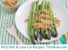 4. When the asparagus is cooked, remove the lid and transfer to a serving platter. Sprinkle the crumb topping over and serve immediately.